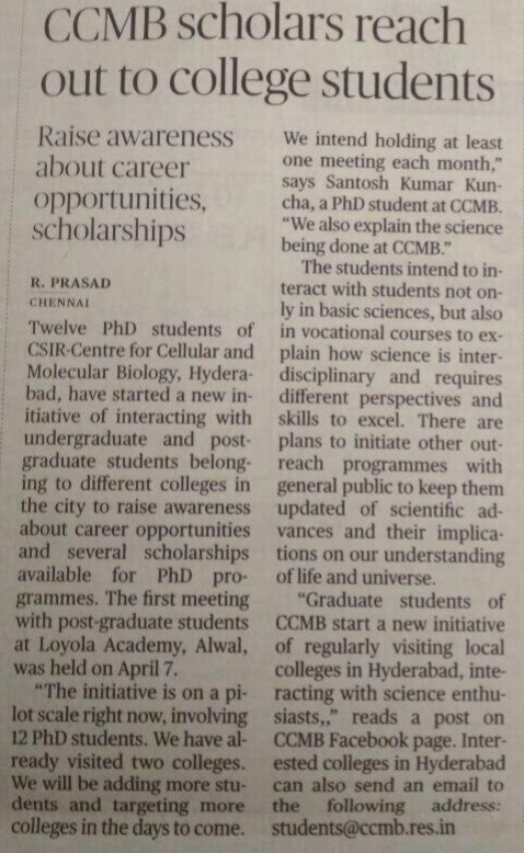 Graduate Outreach Program by CCMB PhD Students